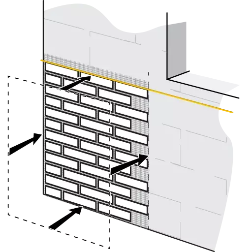 Bereiten Sie alles für die Installation rechtzeitig vor, bevor Sie den Kleber auf die Wand auftragen. Sobald der Kleber aufgetragen ist, bringen Sie die AMK-Platte sofort an. Warten Sie nicht zu lange, da der Kleber, besonders bei Sonne oder Wind, antrocknen und seine Haftkraft verlieren könnte.