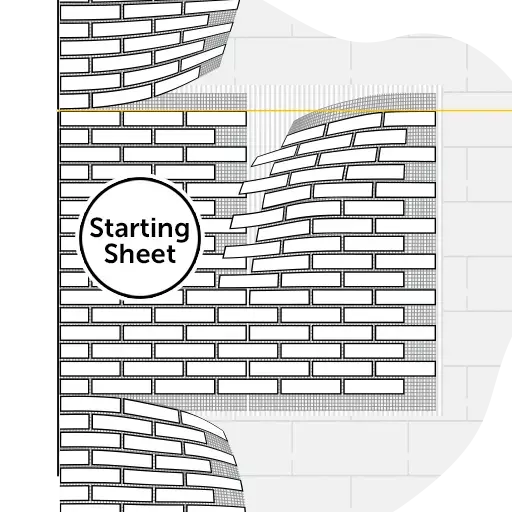 AMK ist äußerst praktisch, da Sie die Installation an jeder beliebigen Stelle der Wand beginnen können, aber wir empfehlen, am Rand zu starten.